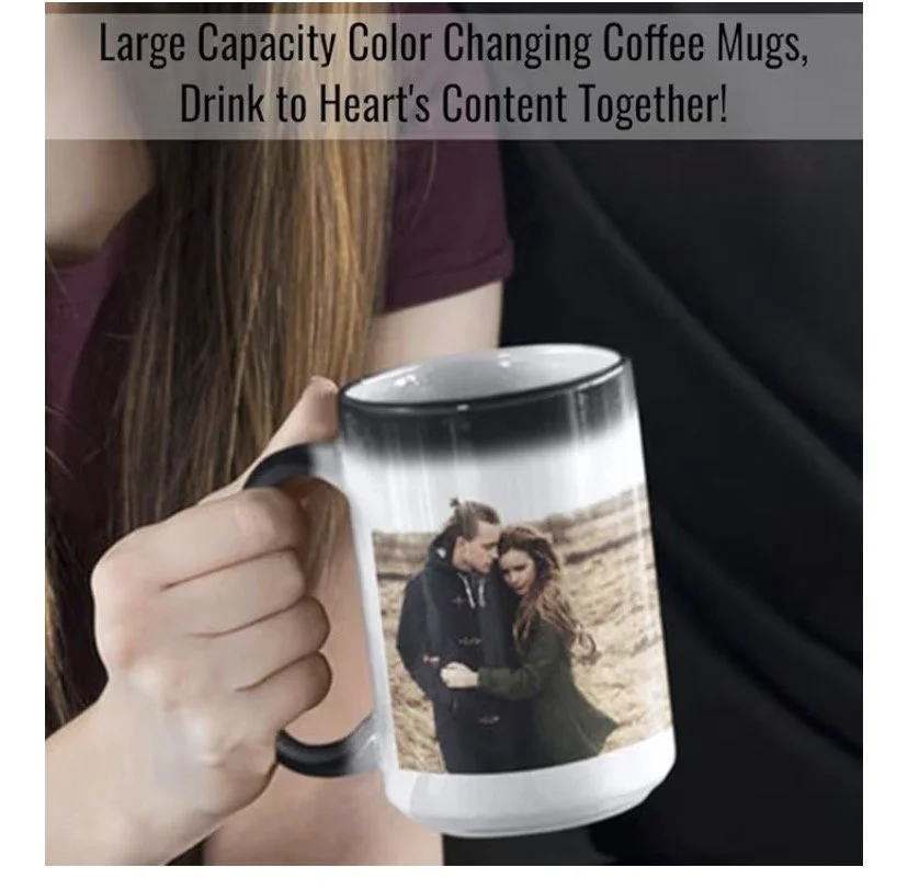 Start your morning with a little magic. This 15oz heat-activated color-changing mug reveals your custom design when hot liquid is added, transforming from a solid dark finish into a vibrant printed image. Perfect for gifts, businesses, photos, or custom artwork.